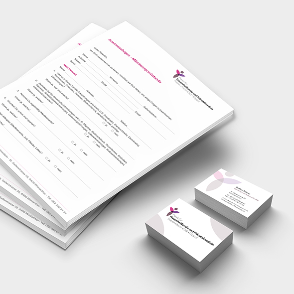 AKSIS Werbe- & Internetagentur hat sich zur Aufgabe gesetzt die fachliche Kompetenz sowie die Kundennähe im neu realisierten Corporate Design widerzuspiegeln. Das neue Signet setzt sich zusammen aus cleaner Typografie mit einem aus Grundformen konstruierten Bildelement, welches die reduzierte Form eines Frauenkörpers abbildet. Warme Farben greifen die Weiblichkeit auf ohne dabei zu aufdringlich zu sein. Dieses Konzept wurde bei den Visitenkarten sowie weiteren Geschäftspapieren wie Anamnesebögen und medizinischen Infomaterialien fortgeführt.